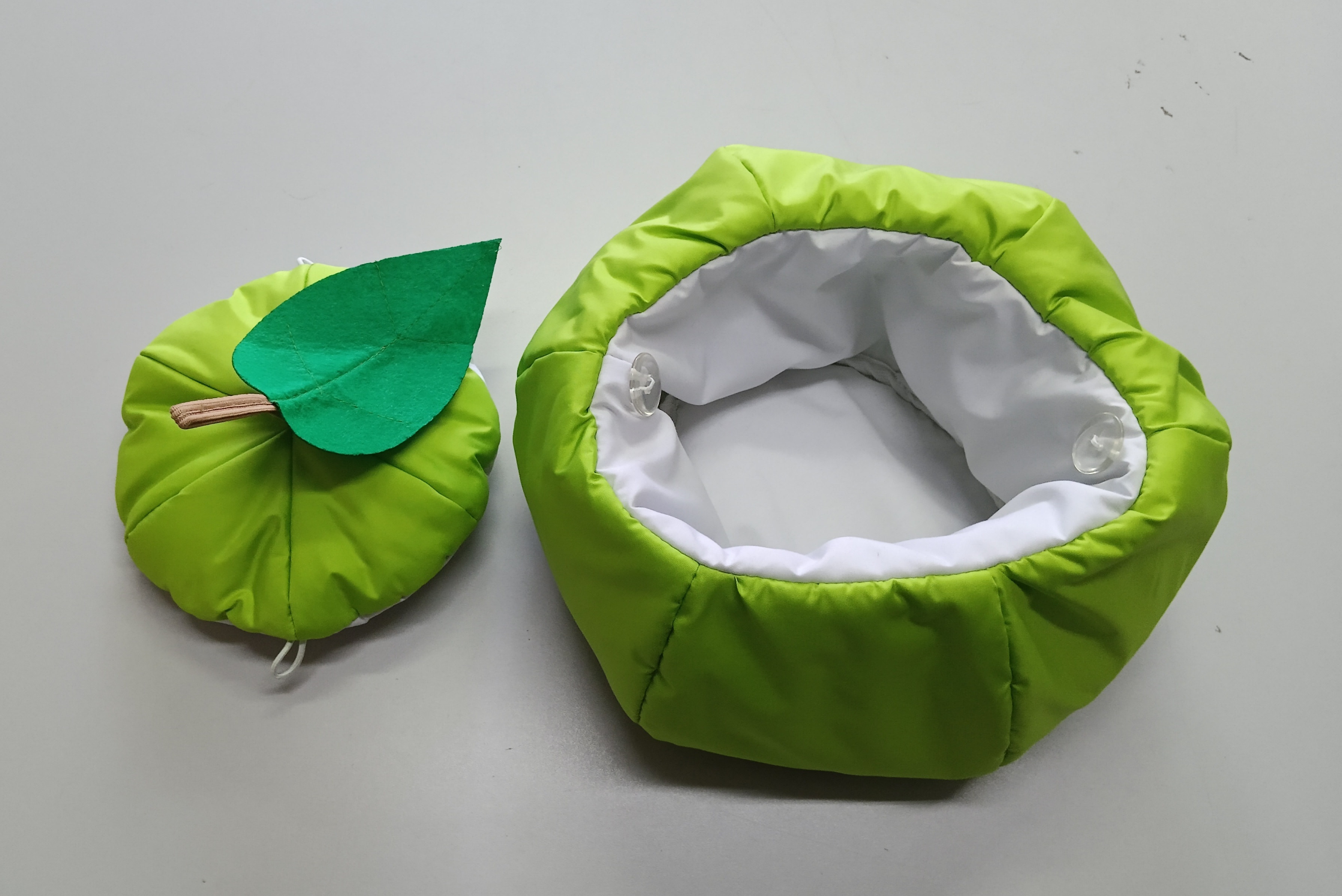 Размеры: высота 35 см (с поднятыми верх листиками), диаметр крышки 18 см, диаметр корпуса 15 см, высота корпуса 16 см, высота листиков 16 см.